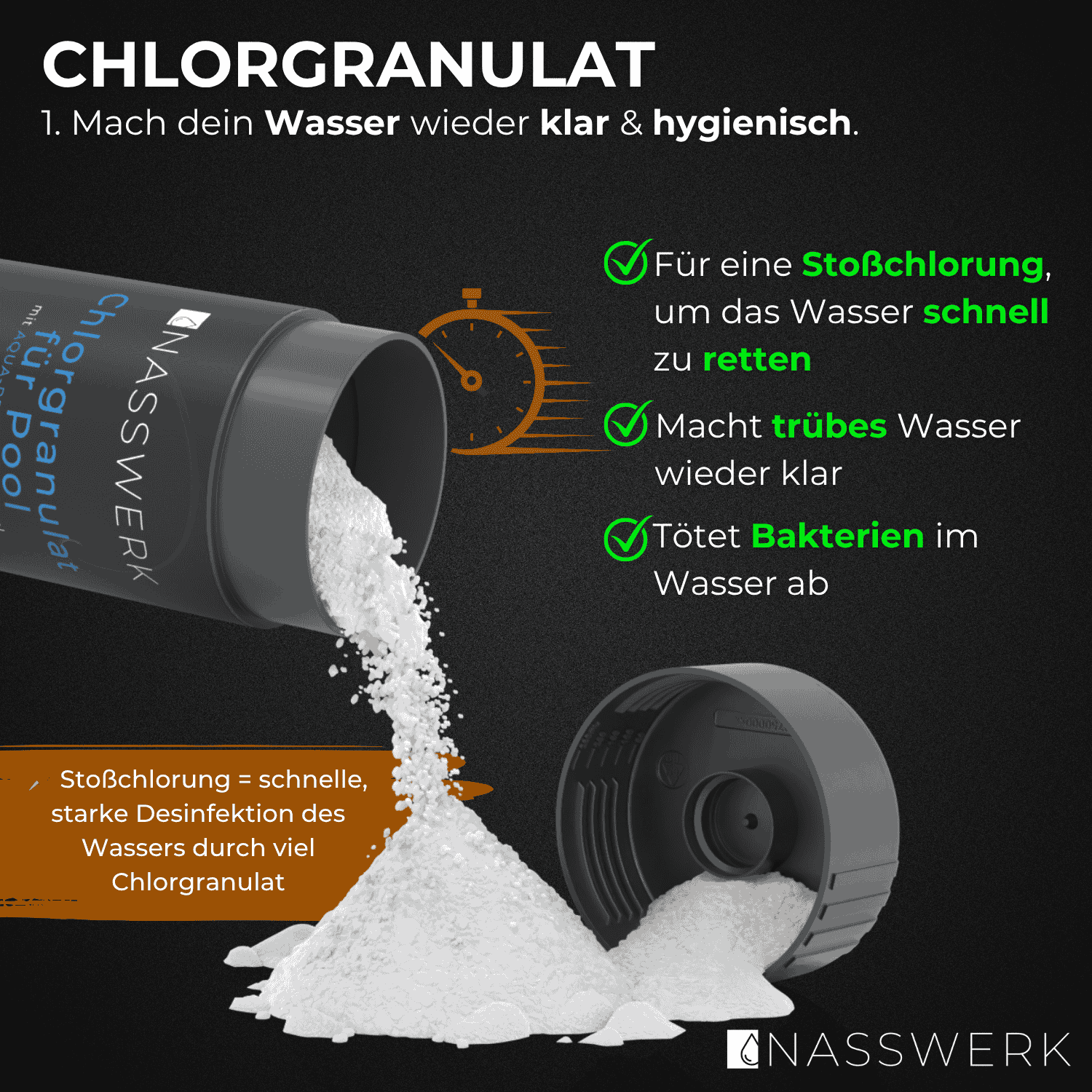 ✅ 1. Stoßchlorung mit Chlorgranulat